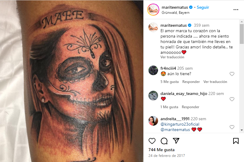 "El amor marca tu corazón con la persona indicada. Ahora me siento honrada de que también me lleves en tu piel!! Gracias amor! lindo detalle... te amoooooo❤️", compartió Matus el 2017 respecto al tatuaje que aún lleva el King.