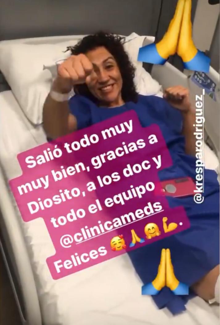 "Salió todo muy bien, gracias a Diosito, a los doc y todo el equipo de Clínica Meds", escribió.