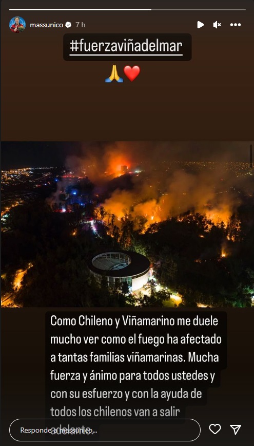 "Como chileno y viñamarino me duele mucho ver como el fuego ha afectado a tantas familias. Mucha fuerza y ánimo para todos ustedes", escribió el doble medallista olímpico en una historia de Instagram.