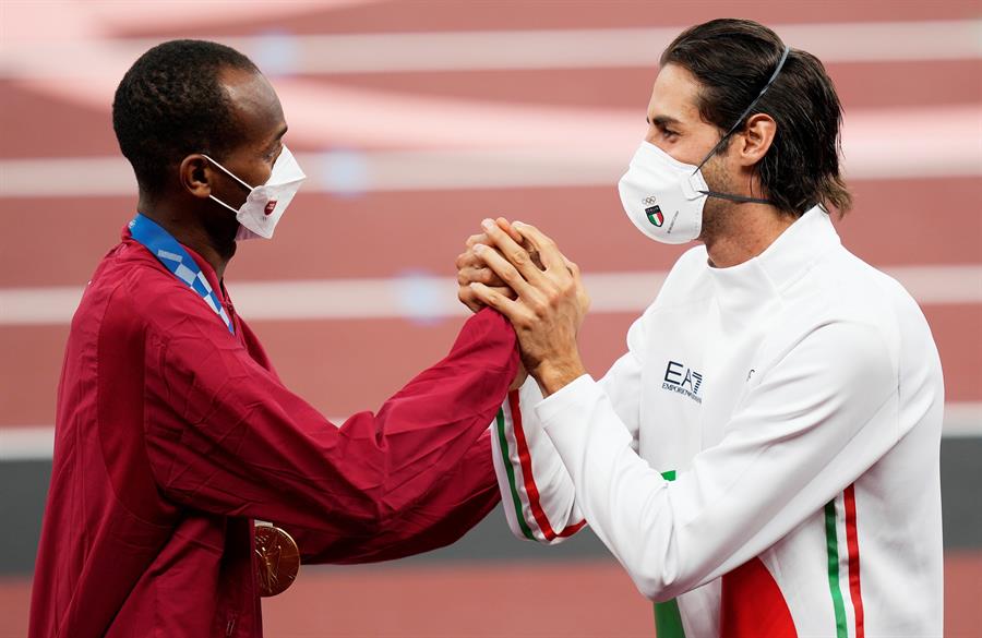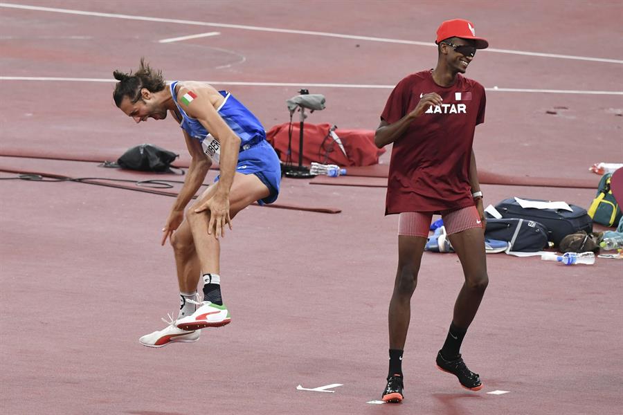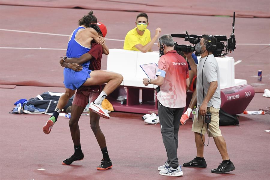 Cuando se hagan los recuentos de los Juegos Olímpicos de Tokio 2020, sin duda ésta será una de las postales. Hablamos del momento en que el atleta de Qatar que ganó el oro decidió compartir la medalla del salto alto masculino con su par de Italia.