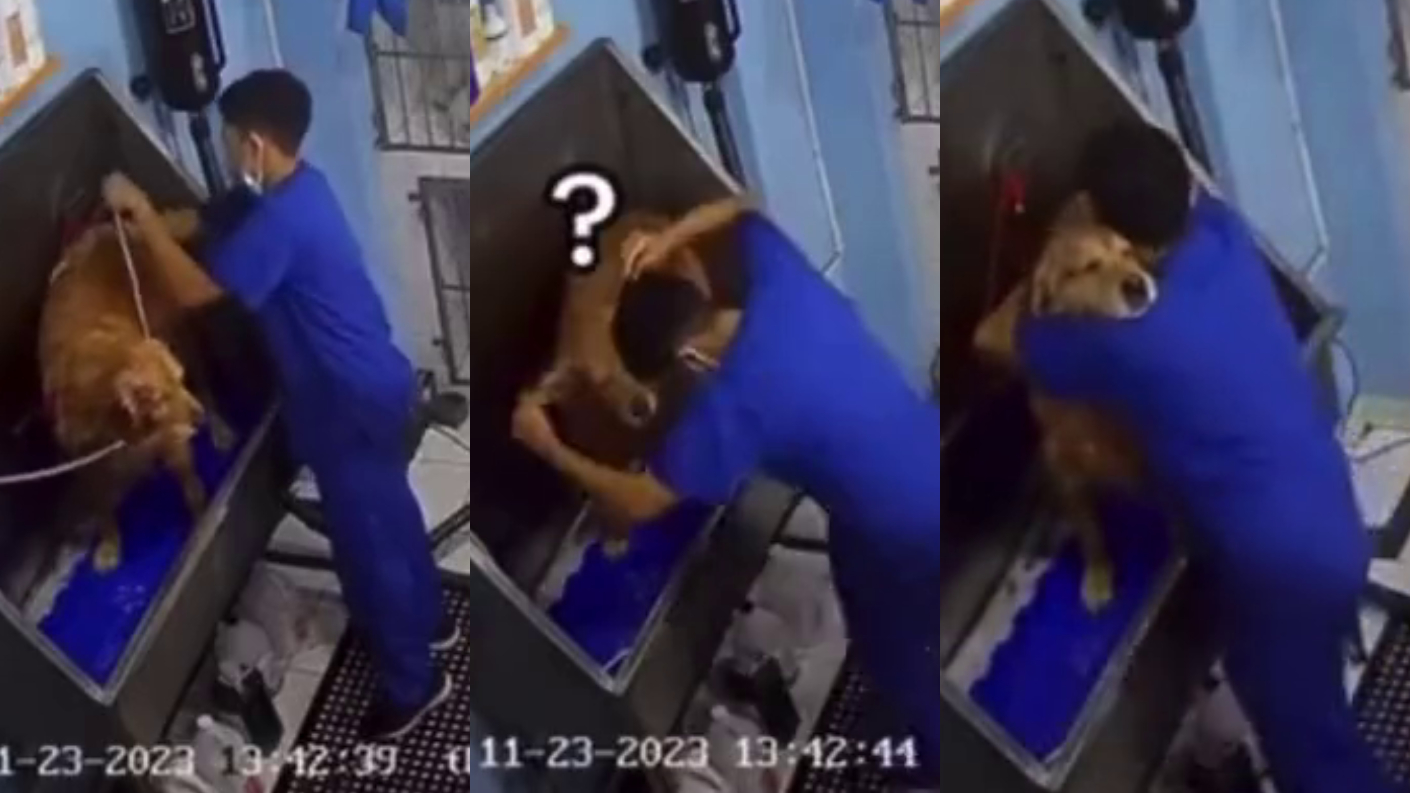 Descubrieron a empleado bailando tiernamente con perrito mientras lo bañaba en Chile y se hizo viral