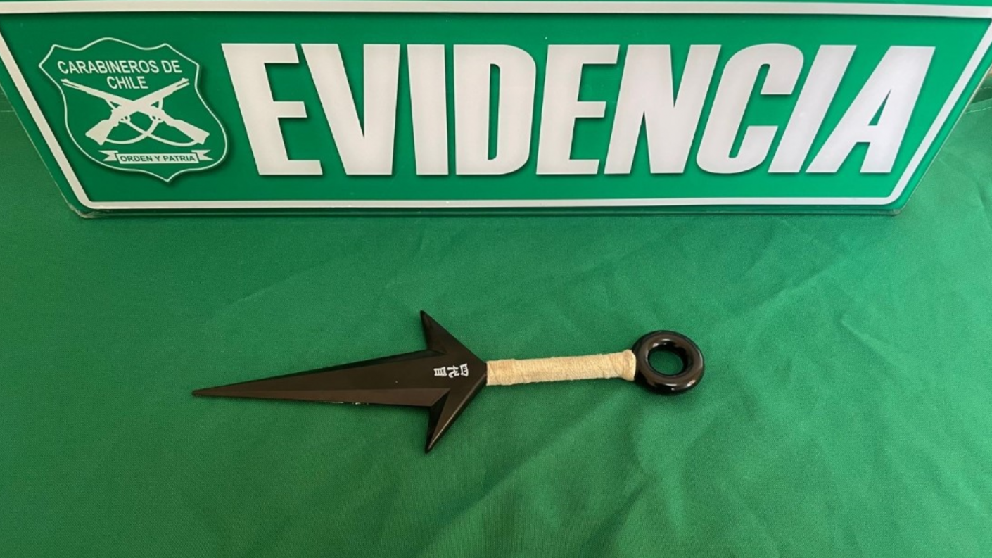 Durante la tarde de este sábado, personal de Carabineros de la 3era Comisaría de Alto Hospicio en la región de Tarapacá, confirmó la detención de un antisocial que portaba un arma de fuego y un kunai, conocida arma blanca japonesa que se viralizó por el animé "Naruto". A través de su cuenta de X la institución señaló: "En trabajo conjunto con la central de cámaras municipales, lograron la rápida detención de un antisocial que mantenía un arma blanca y un revólver con su cañón obstruido". Aunque aún no existen más detalles del hecho, el arma blanca causó sorpresa, puesto que es un simil en color negro del kunai que utilizaba Minato Namikaze en el manga japonés "Naruto".