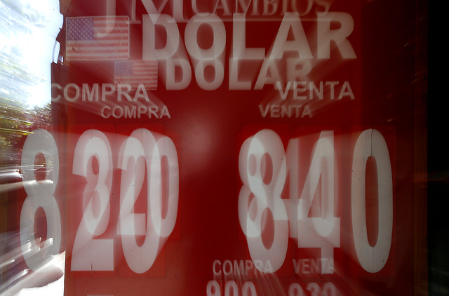 Ayer la moneda alcanzó un nuevo máximo histórico de $838, por lo que el Banco Central anunció un programa de venta de divisas de hasta US$20 mil millones con mira a estabilizar el valor de la divisa, que ha subido cerca de $120 desde el 18 de octubre pasado.