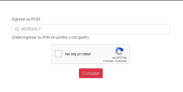 - Una vez dentro, ingresa tu RUT sin puntos y con guión y haz clic en Consultar.