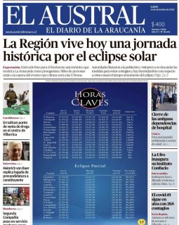 A pesar de la drástica caída de las reservas y el retroceso a Fase 2 en la Región Metropolitana, miles de personas llegaron a las regiones del sur de Chile para poder ver el eclipse total de Sol desde las 11:37 horas.