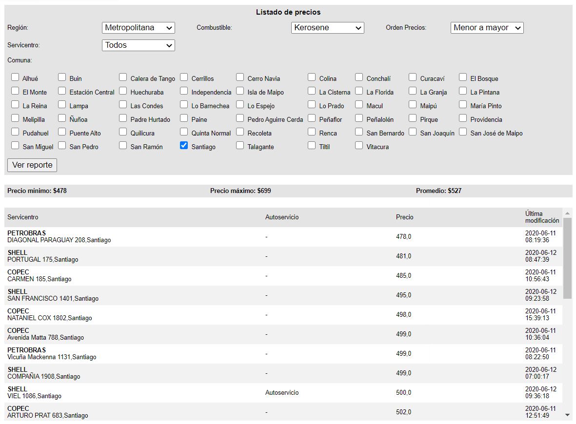 Es por eso que se vuelve imprescindible visitar la plataforma online elaborada por la Comisión Nacional de Energía (CNE) donde se pueden cotizar los distintos valores de los combustibles, incluyendo el kerosene en todo el país.