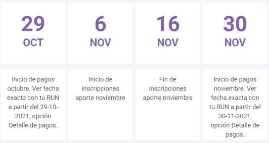 Por otro lado, el pago del aporte comenzará a realizarse a partir del 30 de noviembre. Sin embargo, hay que considerar que esta transacción se puede extender por los primeros diez días del siguiente mes, en este caso, la primera semana de diciembre.