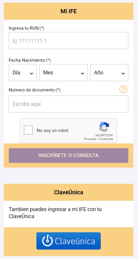 Rellena el formulario de "Mi IFE" con tus datos o ingresa al sistema con tu Clave Única.
