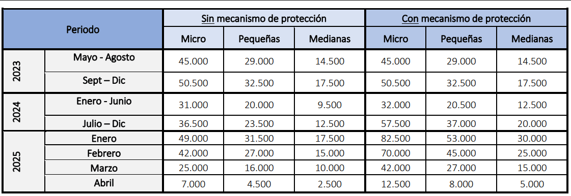 se otorgará un subsidio a las empresas de menor tamaño que acompañe los incrementos del IMM; tendrá una vigencia entre