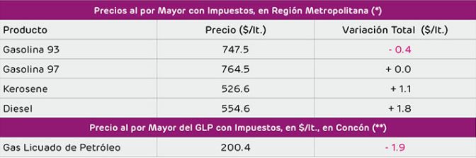 La Empresa Nacional del Petróleo (ENAP) entregó su informe semanal para el valor de los distintos combustibles.