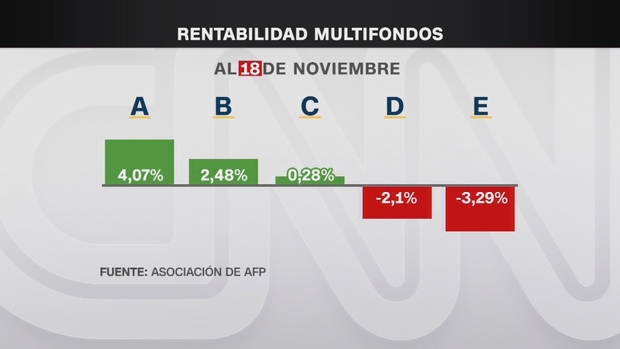 Si bien el fondo A registró una rentabilidad de un 4,07% al 18 de noviembre, la del B fue un 2,48%, seguida por un leve incremento a un 0,28% en los fondos C, el D registró un -2,1% mientras que el E un -3,29%.