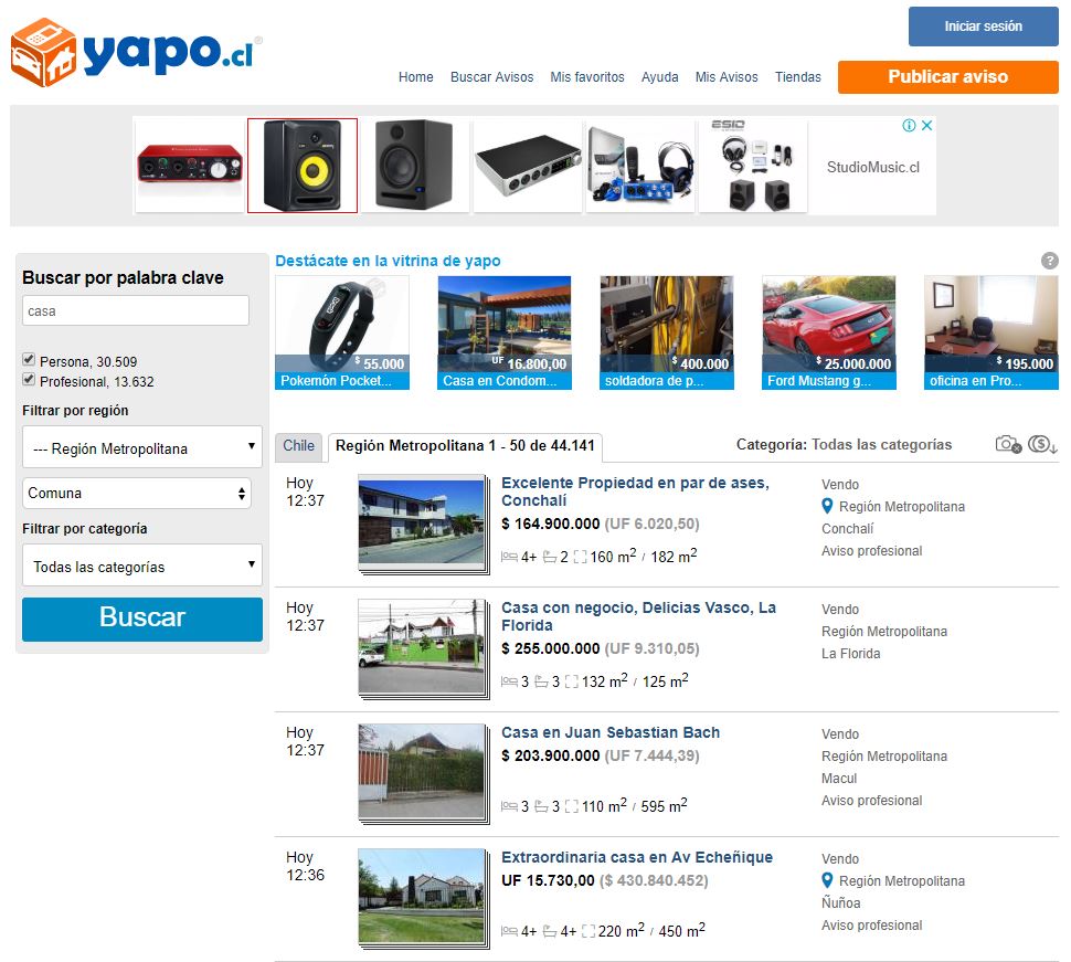 Ante este panorama, en Yapo.cl, sólo en la Región Metropolitana, podemos encontrar más de 22.000 avisos de casas, donde las 5 comunas con más ofertas de venta son Puente Alto (2710 avisos); Maipú (2310 avisos); La Florida (1345 avisos); Colina (1027 avisos); San Bernardo (980 avisos).