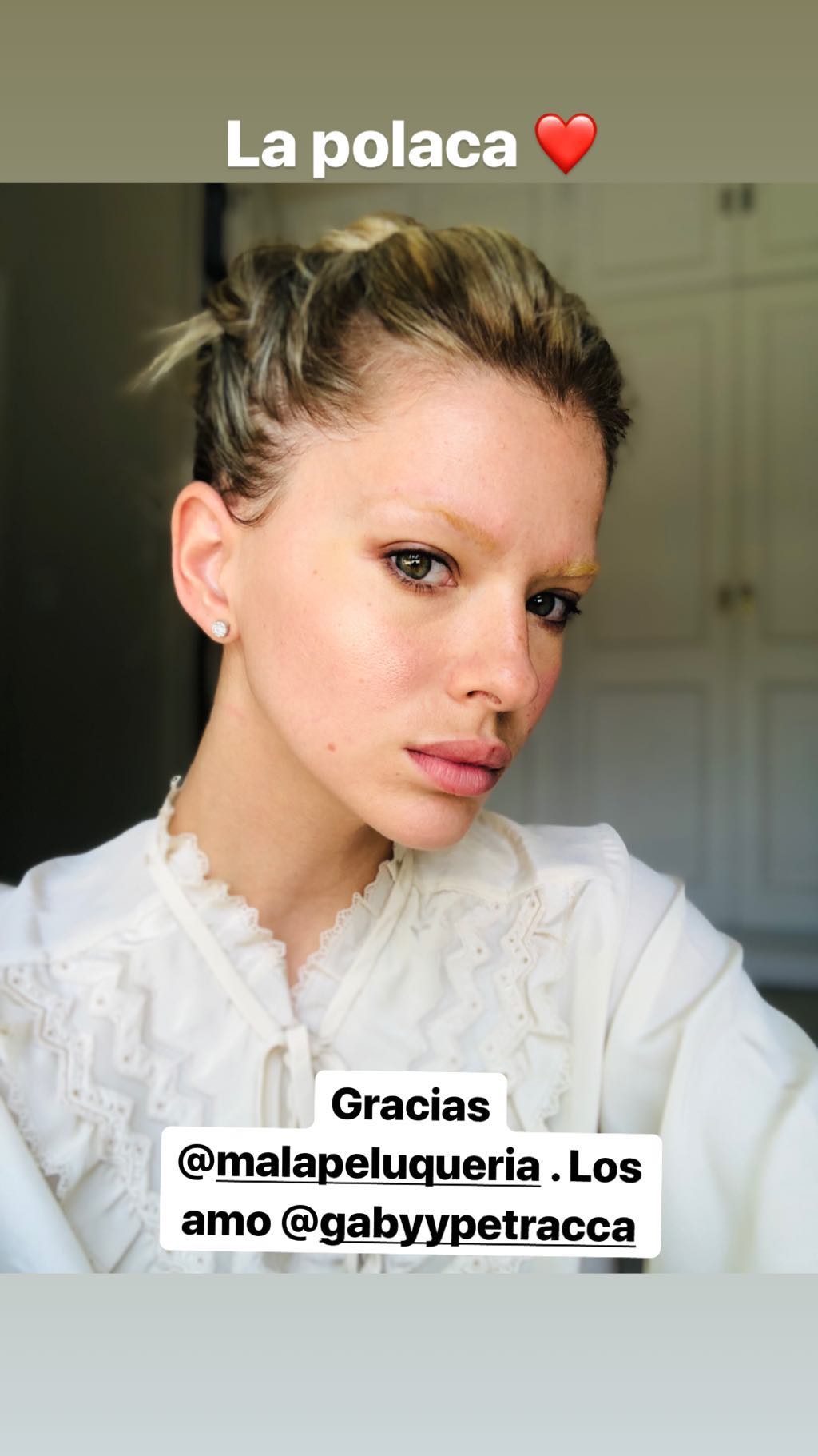 La actriz se arriesgó y tiñó sus cejas rubias y aumentó el platinado de su cabello. “Hola Raquel” y “Hola Polaca” escribió en una foto y un video que subió a Instagram.