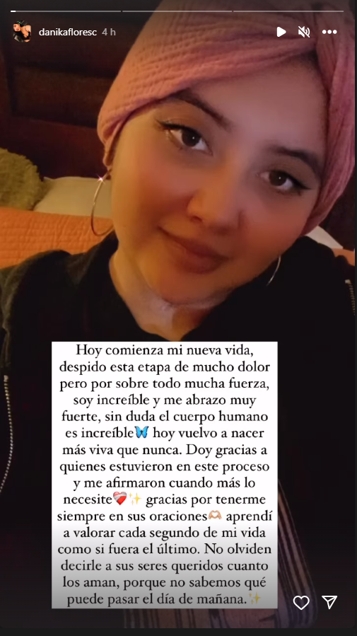 El pasado viernes 28 de julio, Danika Flores volvió a ingresar al quirófano para someterse a una craneoplastia con autoinjerto. A través de su cuenta personal de Instagram, la joven publicó un emotivo mensaje al respecto.