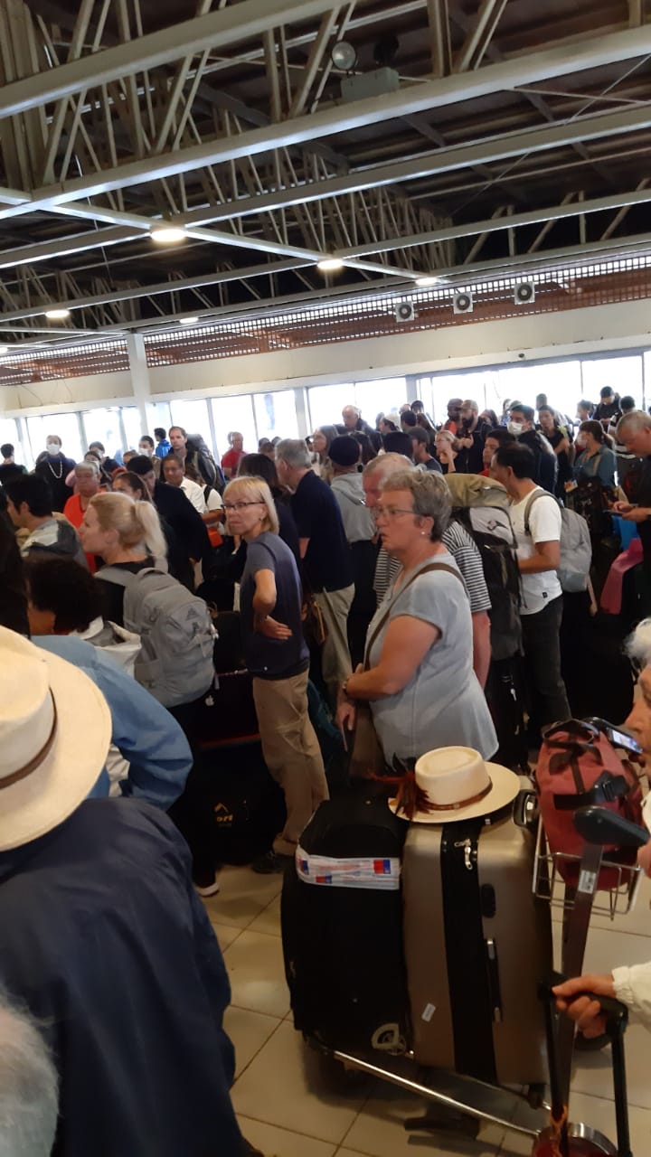 Las imágenes del aeropuerto Mataveri enviadas por Karen muestran que el lleno es total, lo que hace prácticamente imposible aplicar la medida de un metro de distancia para evitar posibles contagios, tal como han recomendado las autoridades.