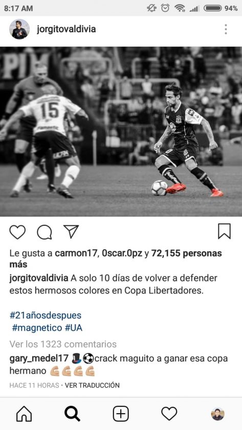 El volante del Besiktas de Turquía comentó en una foto subida por Jorge “Mago” Valdivia donde puso: "Crack, maguito. A ganar esa copa, hermano"