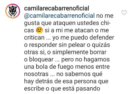 “No me gusta que se ataquen ustedes chicas. Si a mi me atacan o me critican, yo me puedo defender o responder sin pelear o quizás otras sí, o simplemente borrar o bloquear", comentó la joven.