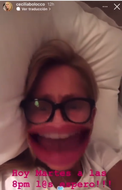 La situación desató las risas de Cecilia Bolocco, quien tuvo que terminar su video usando el filtro que distorsionaba su cara, agrandando su boca.