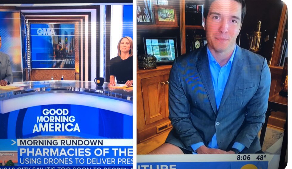 De esta manera, los espectadores pudieron ver sus piernas y hasta parte de su calzoncillo, mientras él continuaba hablando con Michael Strahan y Amy Robach sobre cómo las farmacias entregaban recetas a través de drones.