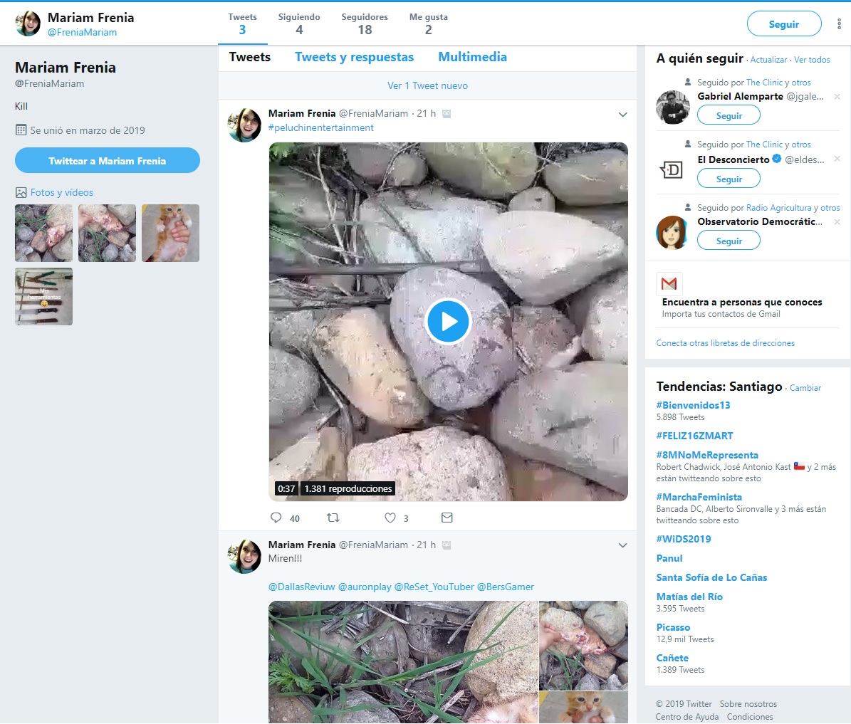 Es una maltratadora y asesina que amenazó a la gente que seguiria matando gatitos si decian algo en contra de "peluchin entertainment"— fabi (@fabi_ola92) March 7, 2019