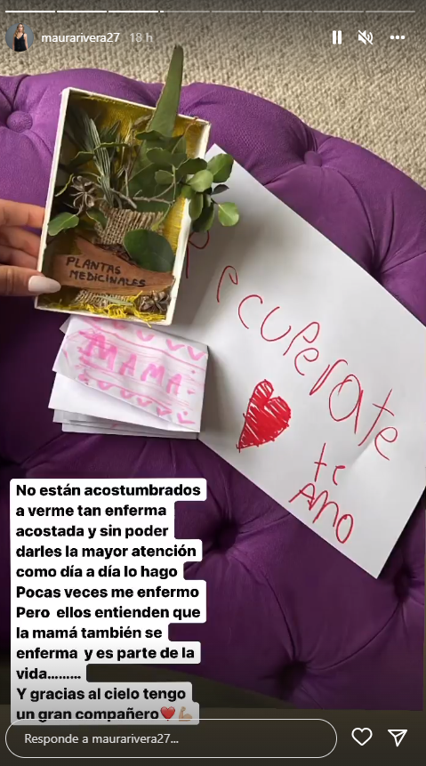 Rivera subió el obsequio a redes sociales con el siguiente texto: “No están acostumbrados a verme tan enferma, acostada y sin poder darles la mayor atención como día a día lo hago”.