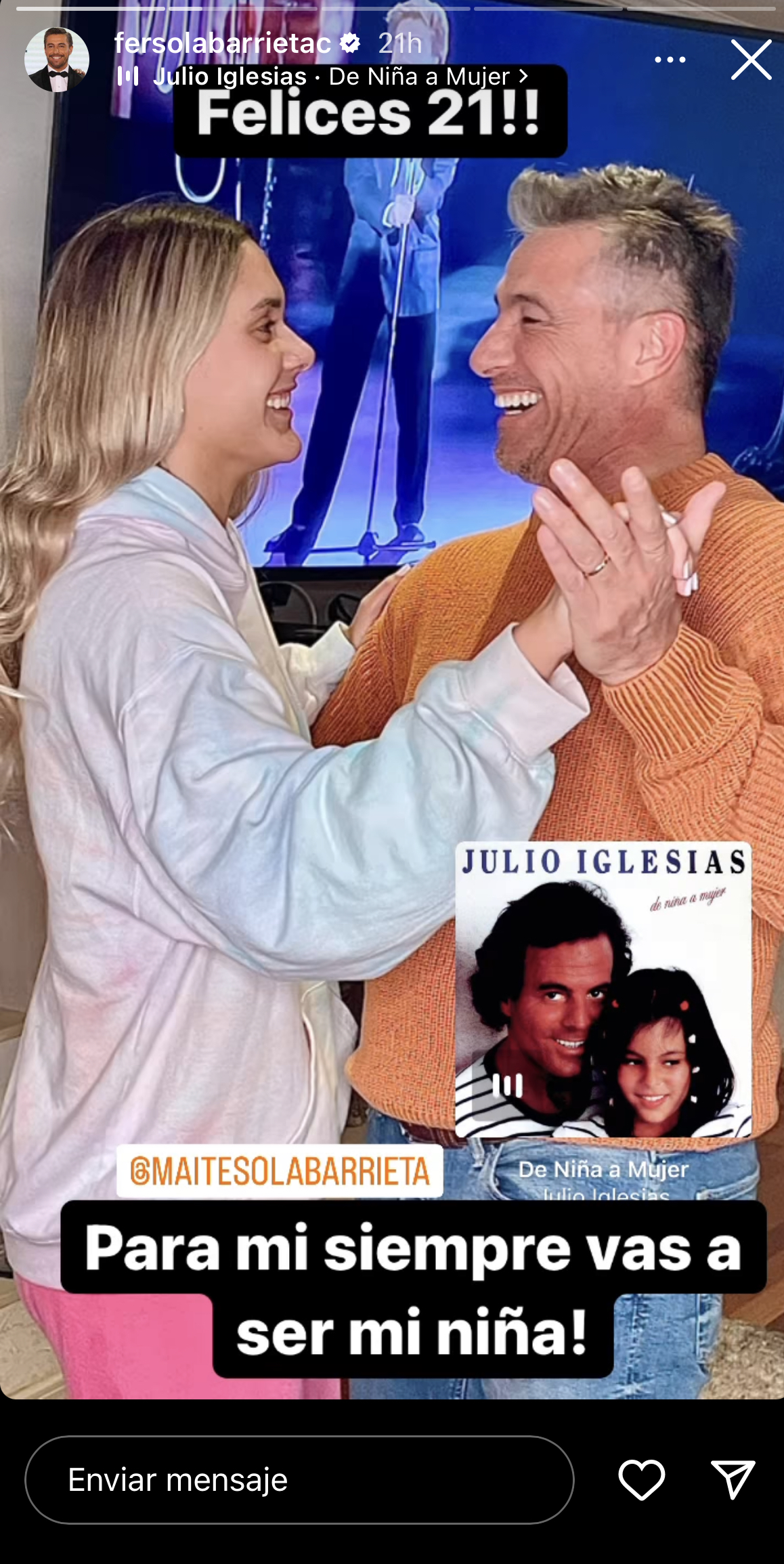 Pero esto no quedó ahí, ya que en sus historias de Instagram también optó por subir una fotografía en la que se los ve bailando. “Para mí siempre vas a ser mi niña”, señaló.