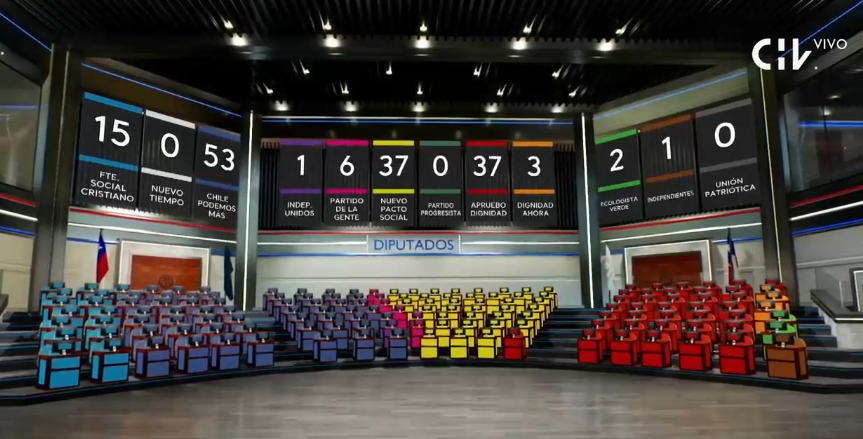 Con respecto a los números entregados por el Servicio Electoral, la Cámara Baja, desde la derecha, Chile Podemos Más tendrá un total de 53 parlamentarios y el Frente Social Cristiano 15.