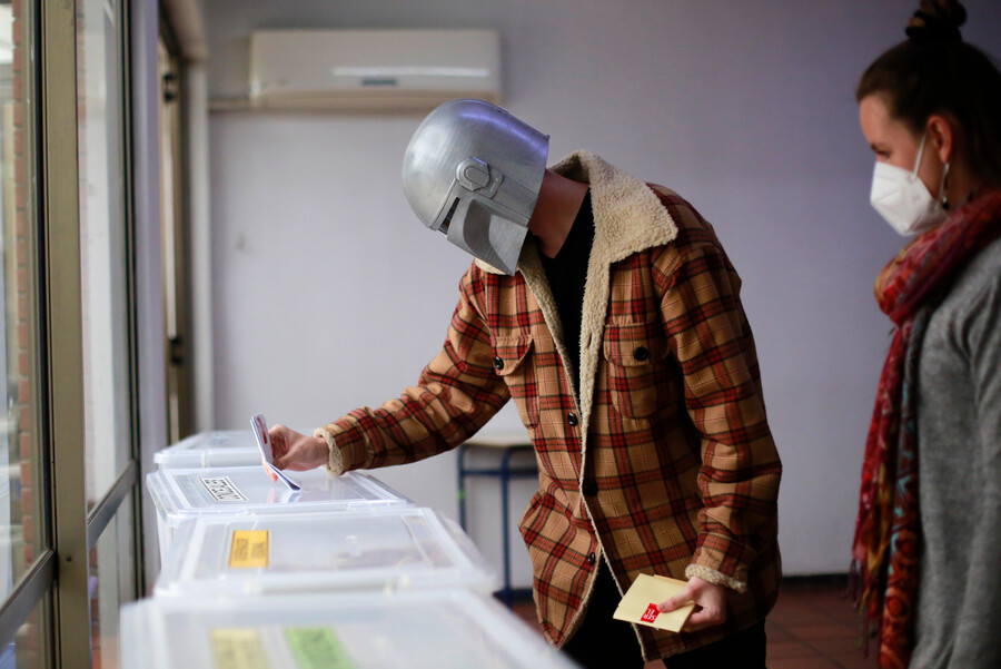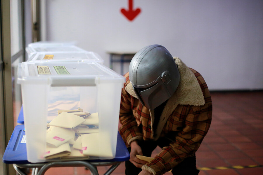La particularidad de este votante fue que llegó al lugar con un casco de The Mandalorian, de la popular saga de Star Wars.
