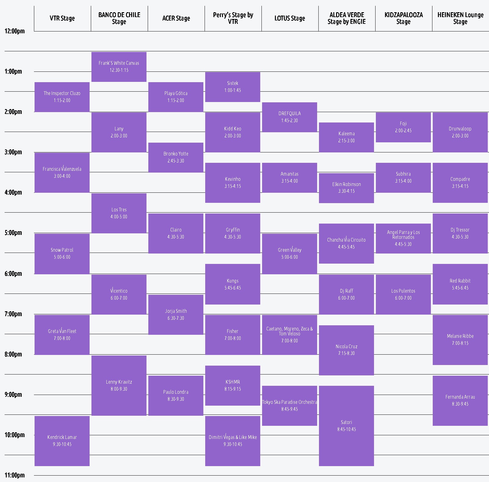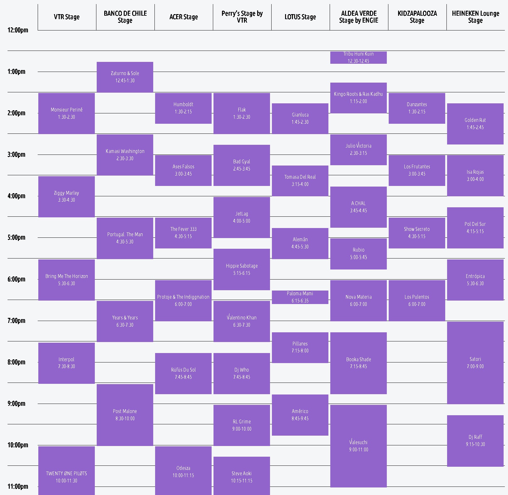 La programación del Lollapalooza Chile 2019 de los 3 días, lo puedes revisar a continuación: