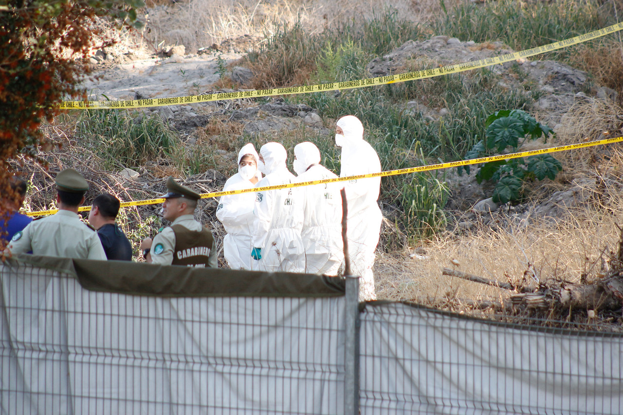 Continúan las pericias en un terreno de Huechuraba, donde el pasado sábado un grupo de trabajadores encontró un saco con osamentas, que corresponderían a un cuerpo femenino.