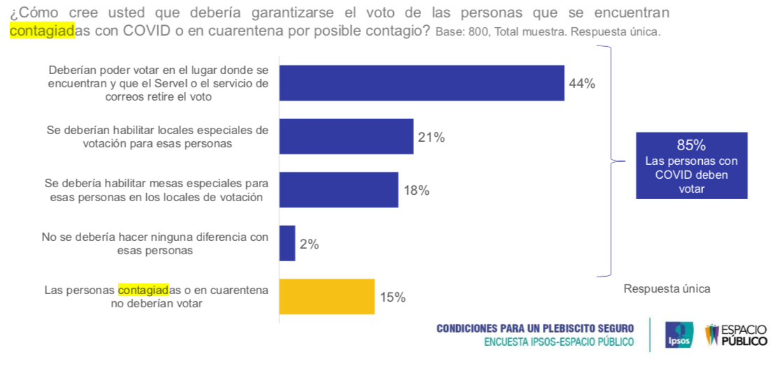 Según la encuesta de Ipsos y Espacio Público sobre “Condiciones para un plebiscito seguro”, 85% cree que las personas contagiadas con COVID-19 sí deberían poder votar el 25 de octubre.