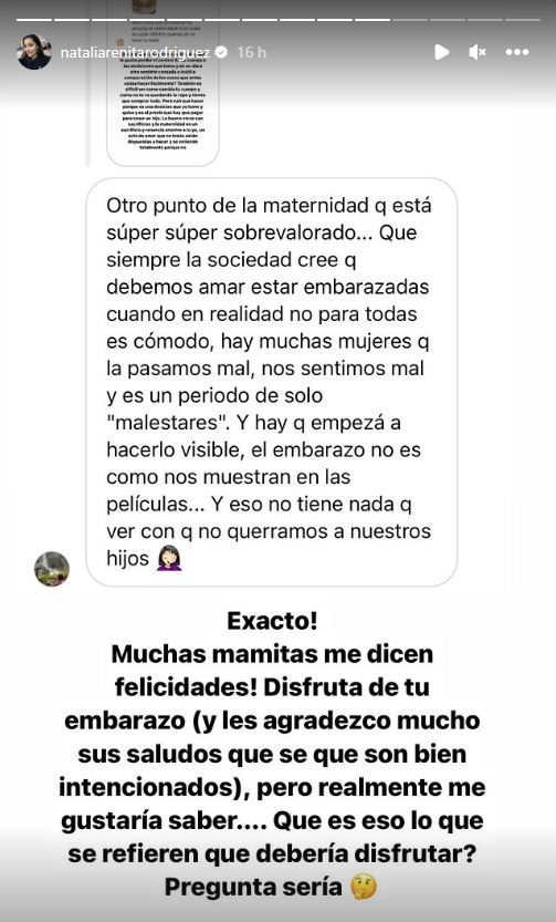 Un punto que fue ratificado por Natalia, acusando que hay muchas mujeres que le dice que "disfrute" de su embarazo, pero a pesar de saber que son saludos bien intencionados, tiene una pregunta sobre esto: "¿Qué es eso lo que se refieren que debería disfrutar?".