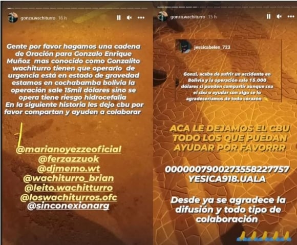 "Gente, por favor, hagamos una cadena de oración para Gonzalito. Tienen que operarlo de urgencia. Está en estado de gravedad", señalaron en la red social.