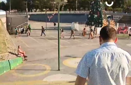 Sin polera y con los ojos cerrados, esta persona estaba concentrada en su mente sin importar el ruido. Esto llamó la atención del periodista del matinal de Chilevisión, quien se acercó al protagonista para conocer más detalles.