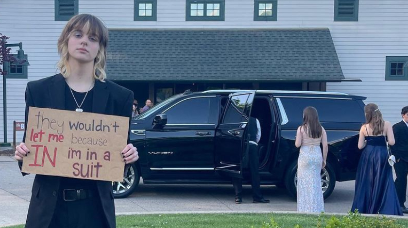"Hoy ha sido mi baile de graduación y no me han dejado entrar porque llevaba traje", denunció en la publicación.