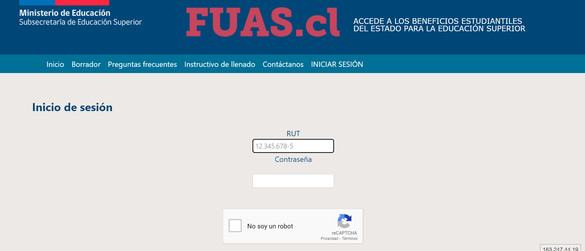 Para rellenar el FUAS 2025 debes ingresar enwww.fuas.clo el Portal de Beneficios Estudiantiles, iniciando sesión con tu RUT y contraseña.