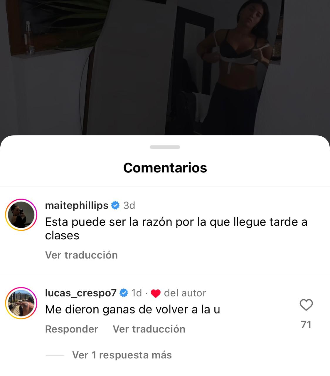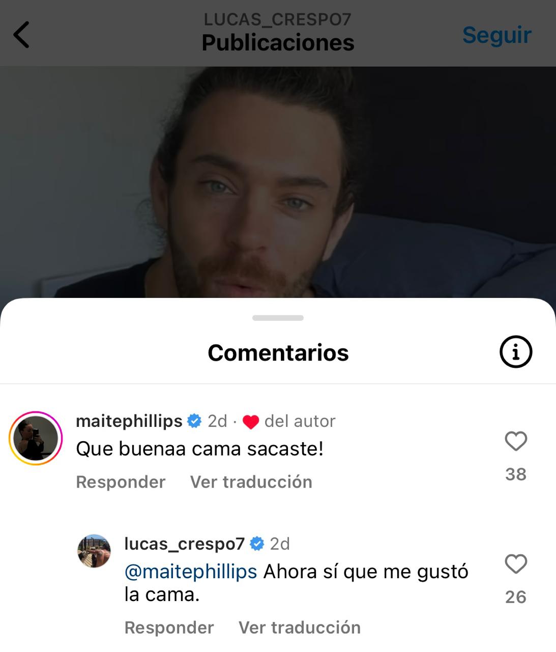 Otro ejemplo fue el comentario que dejó Maite en un post de Lucas, donde él se encontraba promocionando una cama
