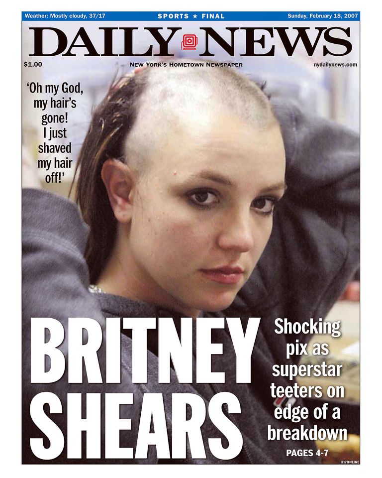 Etapa que quedó inmortalizada en una fotografía que encabezó portadas en todo el mundo en febrero de 2007: la estrella pop cortando su pelo para quedar completamente rapada. Pero no fue la única. En un arranque de furia contra los reporteros gráficos los encaró, evidentemente cabreada, y destrozó un vehículo. Fotos que fueron explotadas hasta el cansancio, volviéndose una broma para todo el mundo y obviando los evidentes dolores de la persona tras la polémica, abriendo la puerta para el colapso.