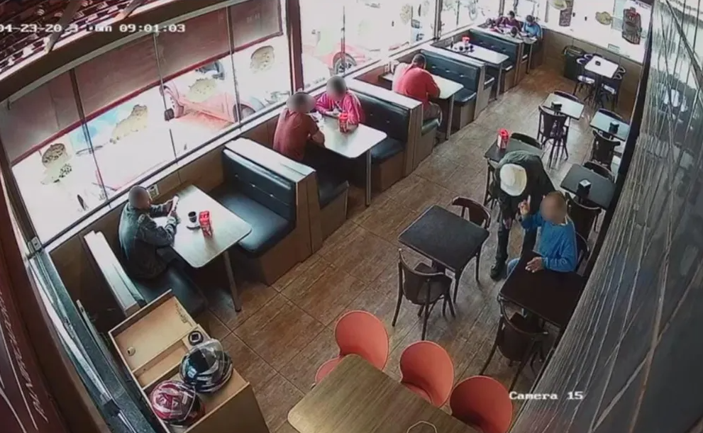 El abandono fue registrado por las cámaras de seguridad y en las imágenes se ve cómo el sujeto camina lentamente junto a su padre hasta dejarlo sentado en una mesa para posteriormente irse del lugar.