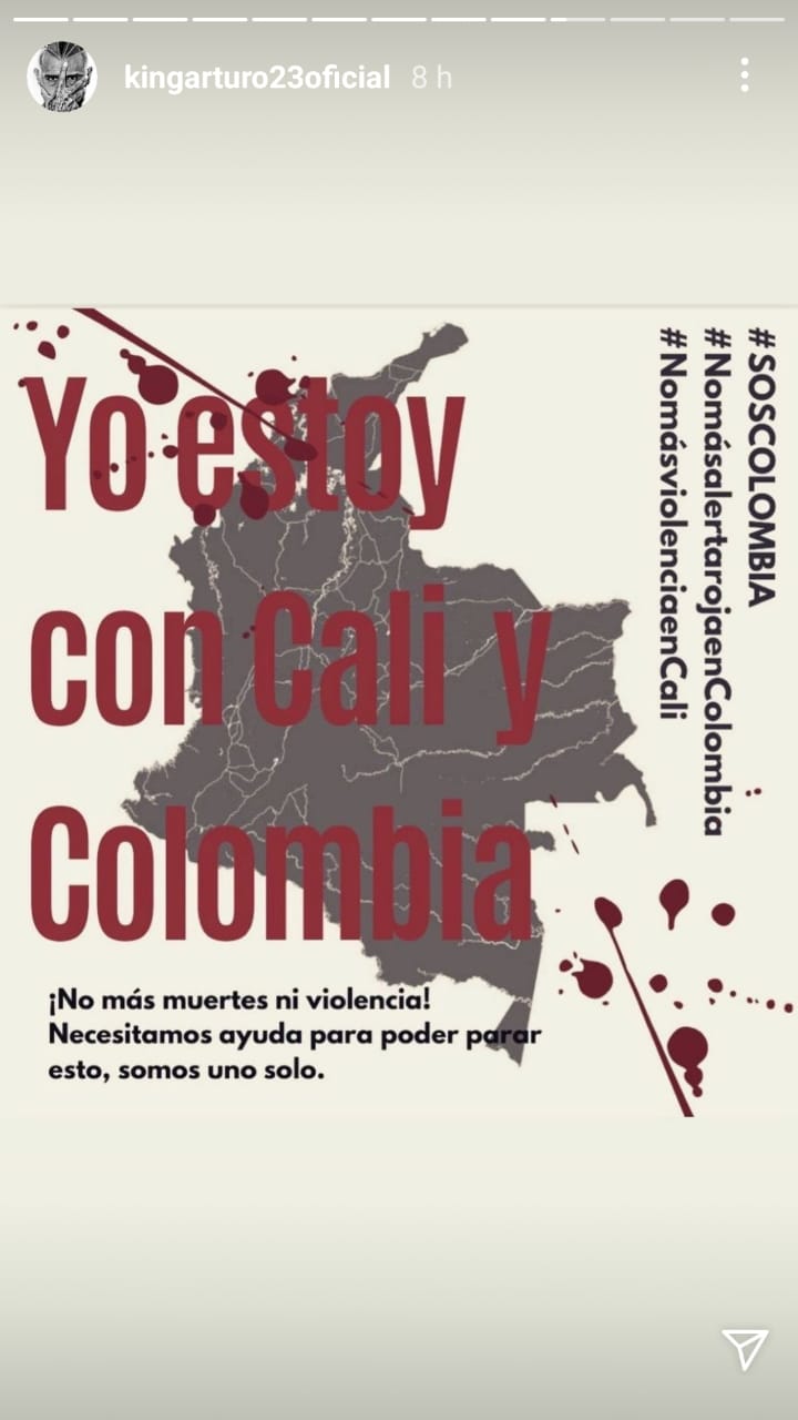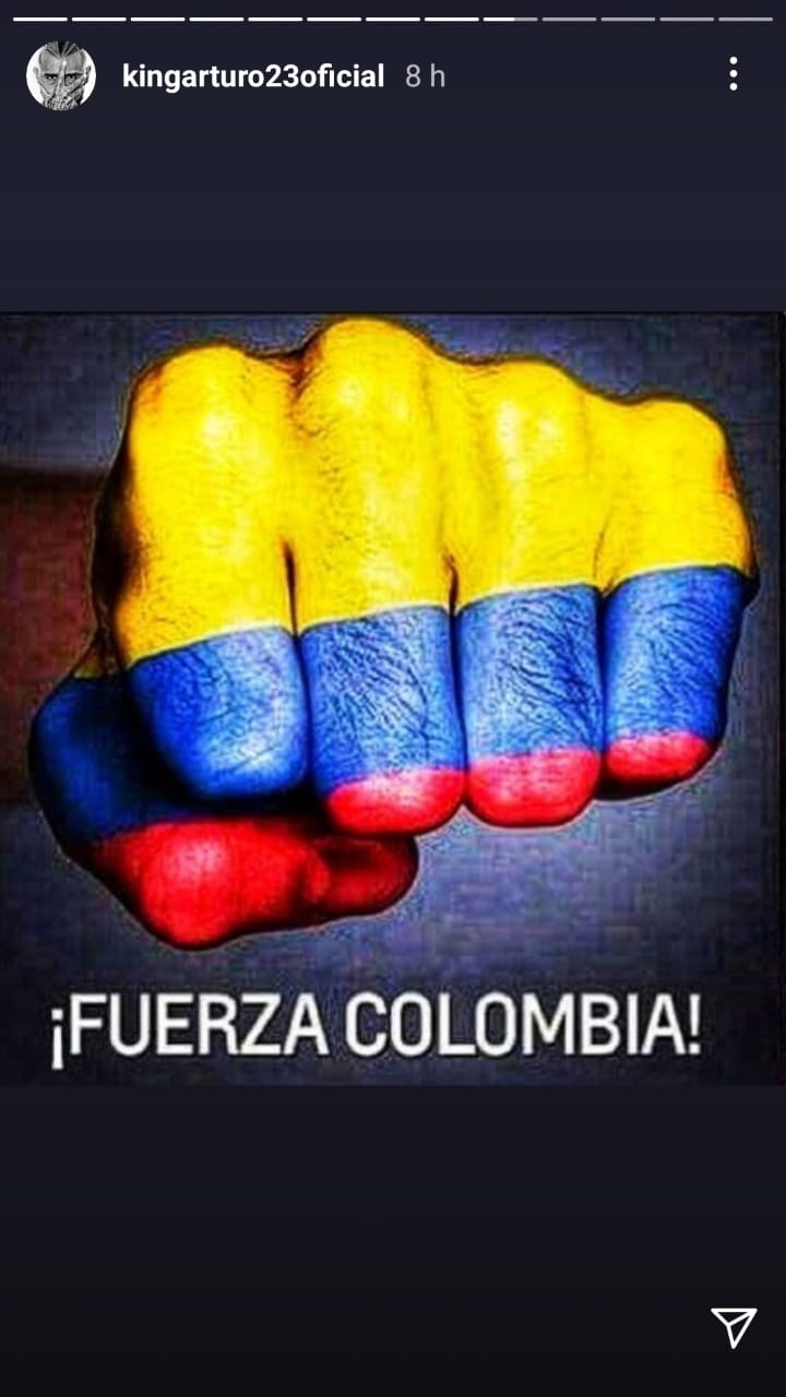 "No más muertes ni violencia" y "¡Fuerza Colombia!" fueron parte del mensaje que entregó al compartir dos imágenes en su cuenta de Instagram.