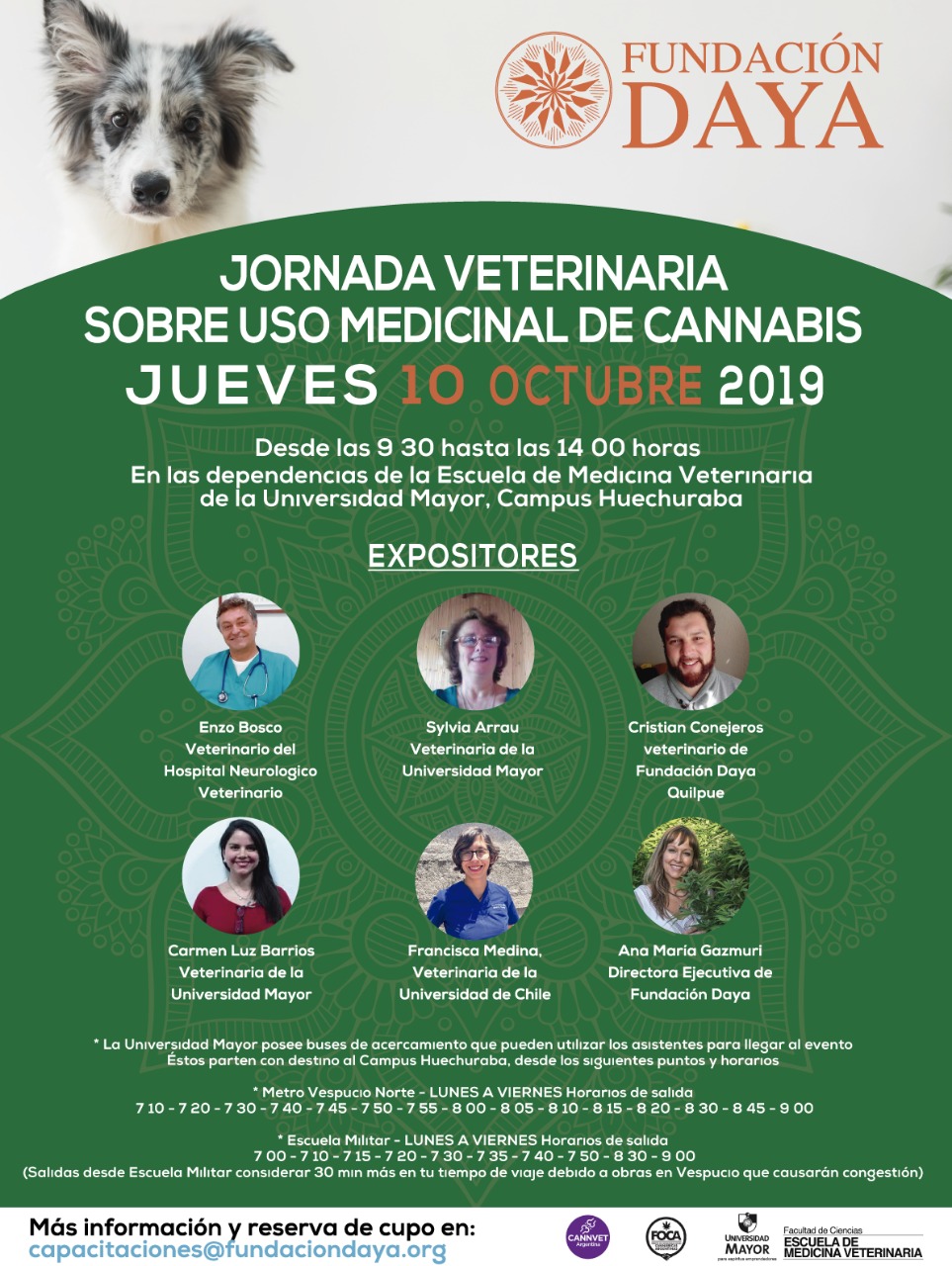 En el marco del V Seminario Internacional de Cannabis Medicinal -que Fundación Daya ha organizado para este viernes 11 de octubre en el Centro Arte Alameda y al día siguiente en el Círculo Español- el jueves 10 se realizará también la primera jornada veterinaria sobre este tema.
