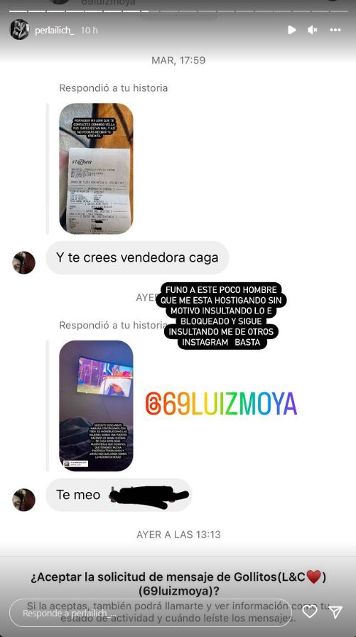 Perla Ilich denunció a través de redes sociales a un usuario de la plataforma por "hostigamiento", según publicó en una storie.