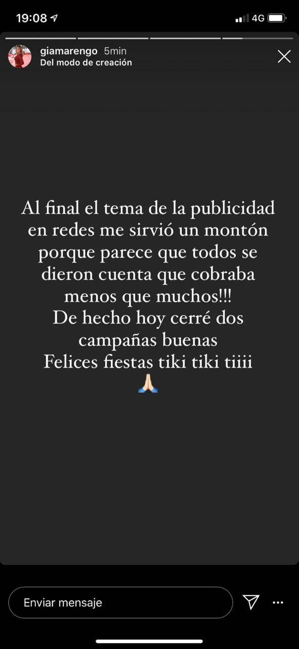 La modelo y ex chica reality, Gianella Marengo se encuentra en el ojo de la polémica luego de que se dieran a conocer los valores que cobra por hacer publicidad a emprendedores en su cuenta de Instagram. La influencer se defendió diciendo que "esta es mi pega, por eso la valido con tantas marcas".