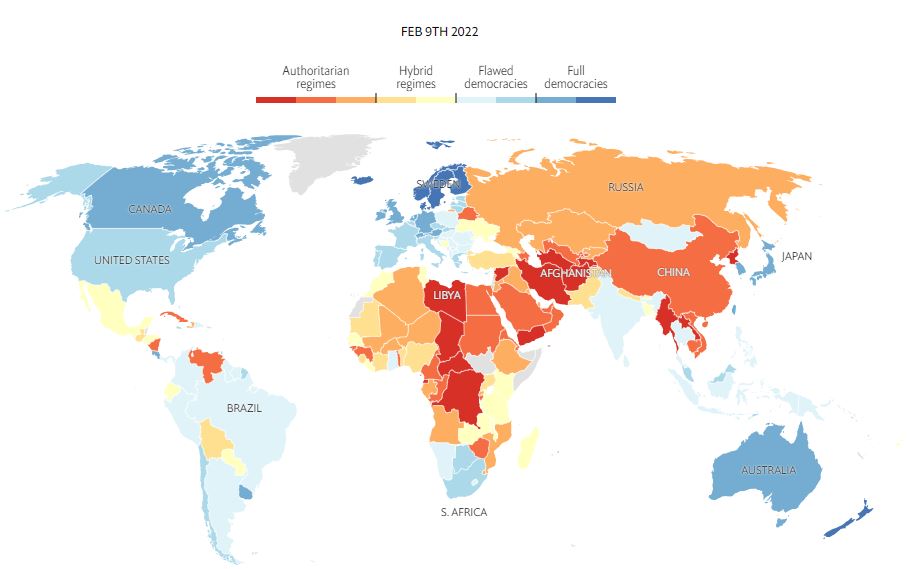El Global Democracy Index, clasificación realizada por la Unidad de Inteligencia de The Economist, correspondiente al 2021, evidenció que Chile tiene una democracia defectuosa.