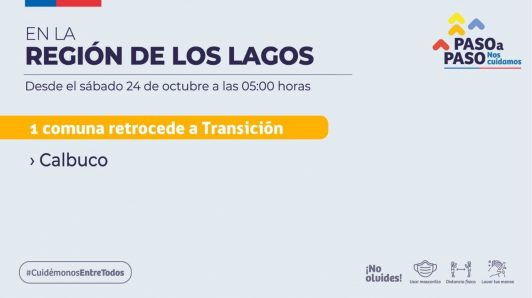 En tanto, la autoridad también comunicó que retrocederán de Preparación a Transición las comunas de Isla de Maipo, Padre Hurtado (Región Metropolitana) y Calbuco (Los Lagos).