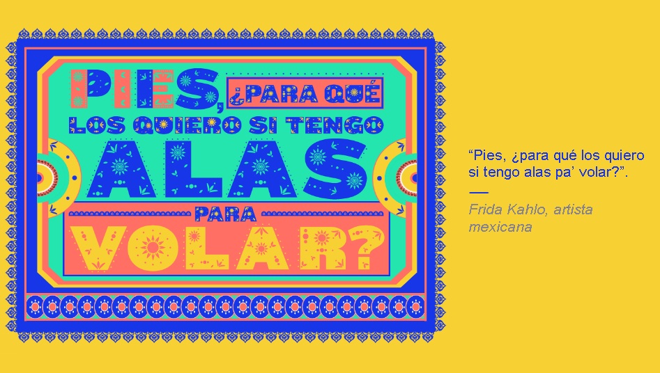 Las piezas gráficas incluyen frases de destacadas mujeres que han dejado su huella en diversas áreas, entre las que figuran Frida Kahlo, Dra. Mae Jemison y Yoko Ono.