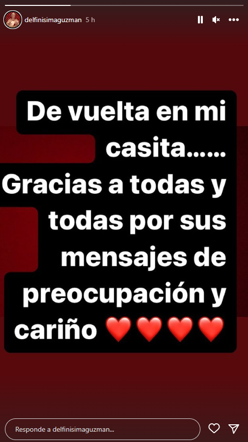 "De vuelta en mi casita... Gracias a todas y todas por sus mensajes de preocupación y cariño", escribió en sus historias de Instagram.