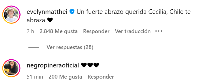 Además se muestran fragmentos de los ciudadanos asistiendo al Funeral de Estado, la guardia de honor que realizaron los ex presidentes, la emoción de los integrantes de su partido y el abrazo entre el presidente Gabriel Boric y la ex primera dama. Acto seguido, aparece un recuerdo de uno de los últimos cumpleaños de Sebastián Piñera, en el que señala: "Y como nadie sabe el día ni la hora, yo le hago una recomendación a todos ustedes: Hay que andar ligero de equipaje en esta vida y preparándose para la próxima". La publicación fue comentada por el hermano del ex presidente, José Miguel Piñera, quien puso emojis de corazón al igual que la doctora Paula Daza, quien fue subsecretaria de Salud en su último gobierno. Finalmente, a ellos se sumó la alcaldesa de Providencia, Evelyn Matthei, quien señaló: "Un fuerte abrazo, querida Cecilia. Chile te abraza".
