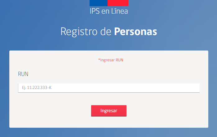 • Ingresa al sitio web de IPS en Línea, escribe tu RUT, y haz clic en "ingresar".