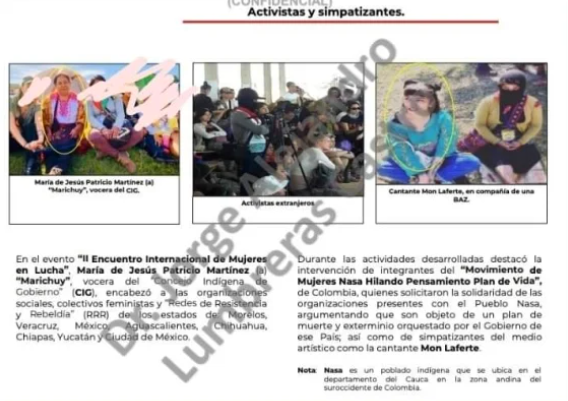 El Ejército mexicano habría vigilado durante cinco años a organizaciones feministas que lideraban protestas contra la violencia machista en dicho país. Entre las fichas que se filtraron, figura la cantante chilena Mon Laferte, que fue catalogada como "activista y simpatizante" del movimiento.